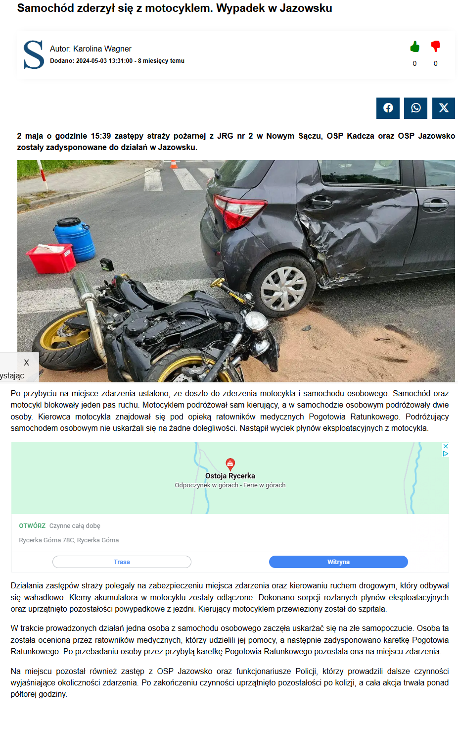 03.05.2024 Samochód zderzył się z motocyklem>sadeckie.pl