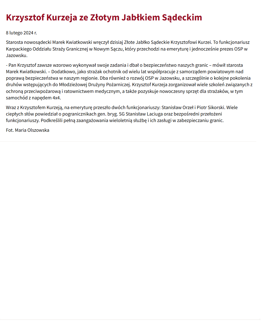 08.02.2024 Krzysztof Kurzeja ze Złotym Jabłkiem Sądeckim>nowosadeckie.pl