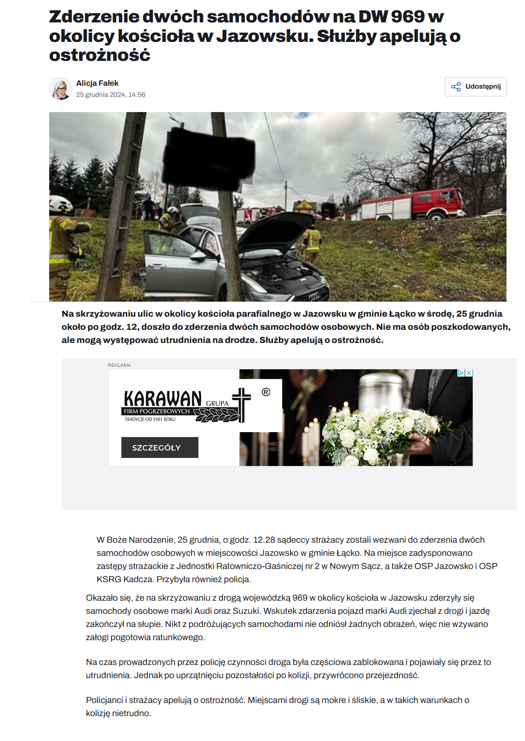 23.12.2017 Wypadek w Jazowsku->więcej kliknij: nowy-sacz.info