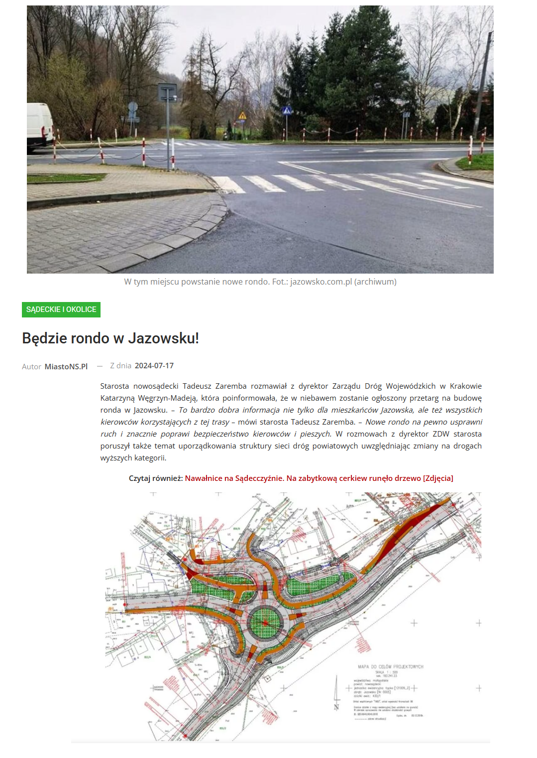 17.07.2024 Będzie rondo w Jazowsku>miastons.pl