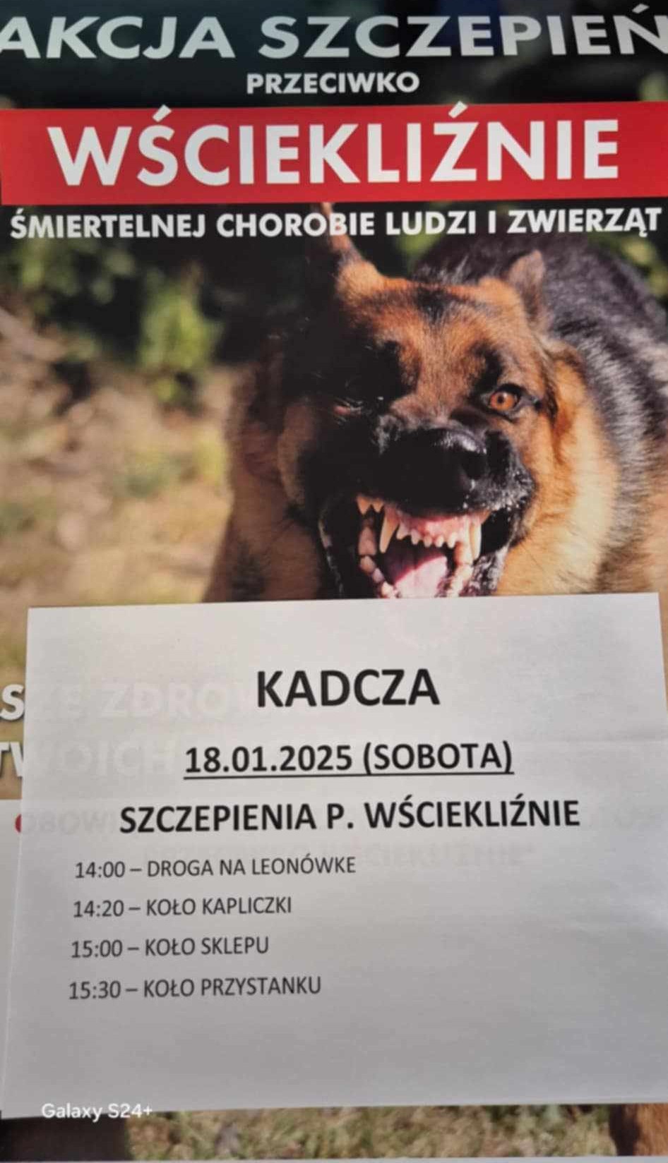 W najbliższą sobotę tj.18 stycznia będzie okazja, żeby zaszczepić psa przeciwko wściekliźnie. w miejscowościach Jazowsko, Kadcza według powyższego harmonogramu. Koszt - 30 zł od psa - szczepienie dokonuję lek. weterynarii.