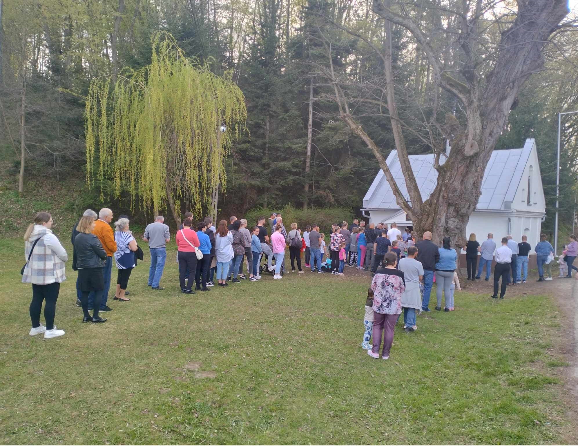 W ten upalny Wielki Czwartek wierni nie tylko z naszej okolicy, ale i z odległych miejsc pielgrzymują przed je oblicze, czego dowodem jest powyższe zdjęcie. W kolejce do drzwi kapliczki trzeba spędzić zazwyczaj kilkadziesiąt minut. Dawniej kapliczka była otwarta, można było wejść do środka, kolejny rok nie ma takiej mozliwości. Niezwykłe miejsce owiane jest legendą za sprawą wyjątkowej figury Chrystusa. Jaka jest dokładnie historia tej kapliczki? Poniżej tekst z Polska niezwykla.pl
