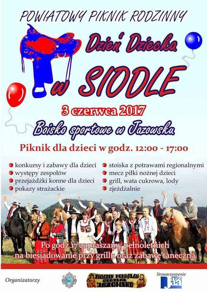 Na początku maja odbył się Turniej i Festyn Akademii Piłkarskiej Budowlani Jazowsko, po miesiącu kolejne wydarzenie kierowane przede wszystkim do dzieci - Powiatowy Piknik Rodzinny - Dzień Dziecka w Siodle. Od godziny 12 do 17 dla najmłodszych na boisku sportowym w Jazowsku czeka moc atrakcji. "Po godzinie 17:00 Zapraszamy pełnoletnich na biesiadowanie przy grillu, oraz zabawę taneczną " dość zagadkowo to brzmi, szczególy na powyższym plakacie. Fotorelacja z tego wydarzenia na naszej stronie.