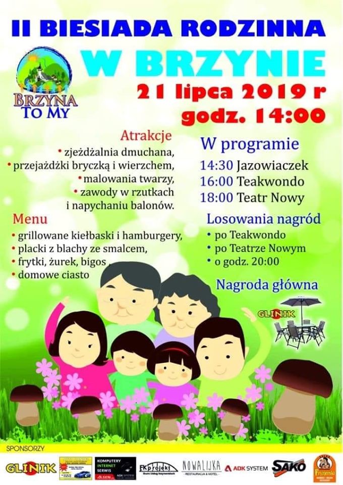 Zwracam się do Ciebie, młody człowieku, Ty nieco starszy i w różnym wieku. I tak o to pisze i tak apeluje.,ze jutro na Brzynie impreza się szykuje. Będzie tam festyn extra wspaniały i cieszyć się będzie każdy i duży i mały. A ja z aparatem tam będę stał, byś później na fejsa, coś wrzucić miał. A będzie też ciasto i będzie też kawa, a na dobranoc super zabawa. Tam potańczymy i pośpiewamy, bo takich oto artystów mamy. Przyjadą też goście i z bliska i z daleka taka to będzie wideoteka. A ja już myślę i sobie marzę, że tam na pikniku coś se usmażę. Będą kiełbasy, różne szaszłyki, bo to gospodyń najlepsze triki. Więc piszę na stronie i mówię otwarcie, jutro na BRZYNE poprzyjeżdżajcie.