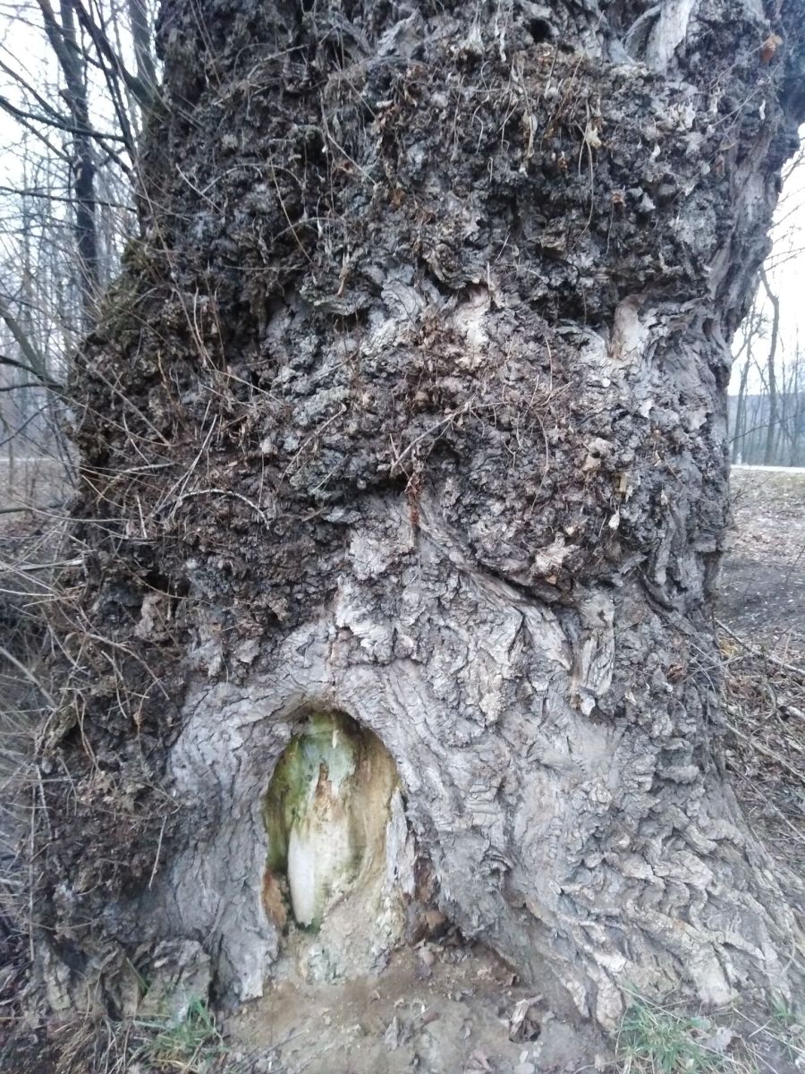 Meijsce gdzie znaleziono zapisek znajduję się w tym otworze starej topoli.