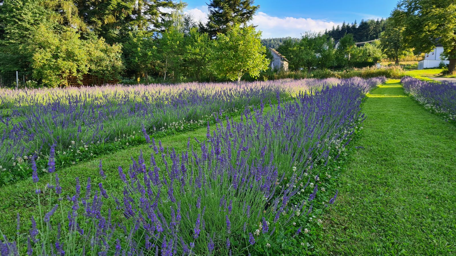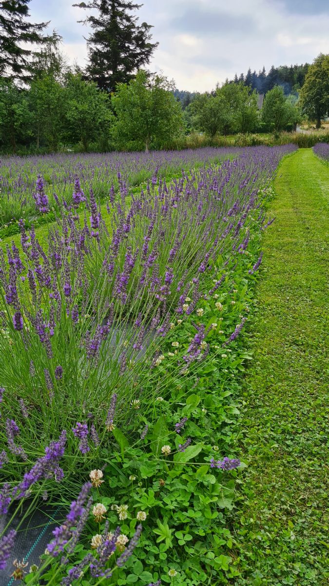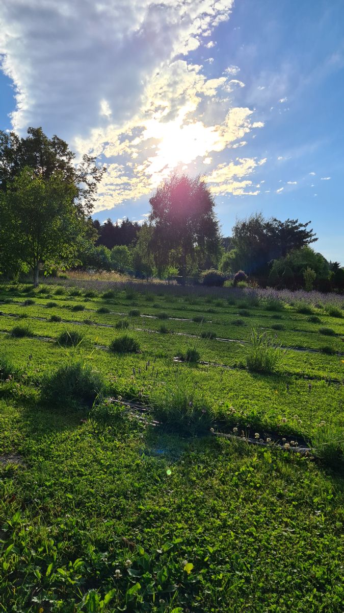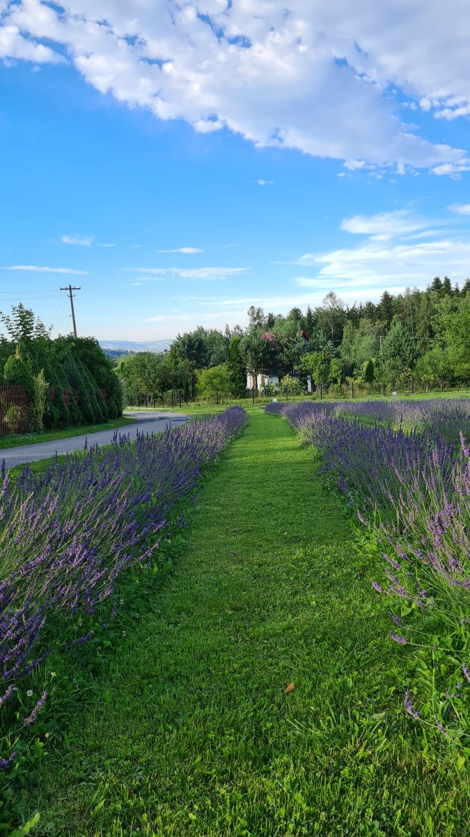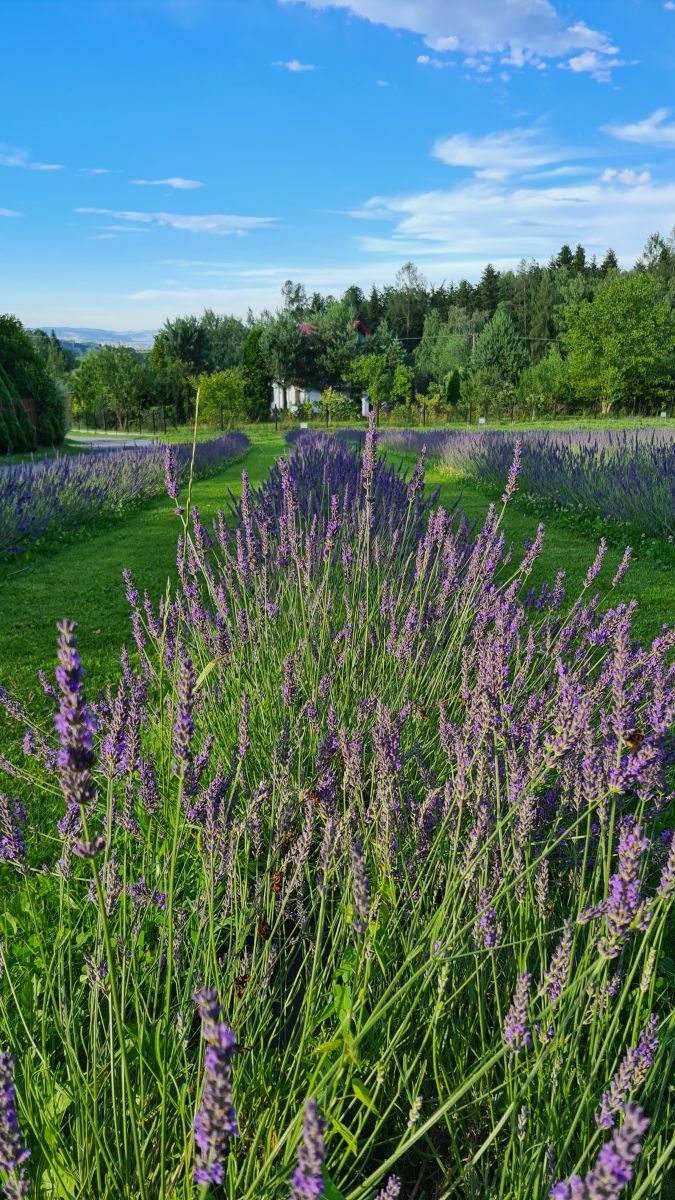 Pole lawendowe ma dopiero rok. To było jej pierwsze kwitnienie. Posiadamy 6 odmian lawendy. Łącznie zasadziliśmy ponad 1000 krzaczków. Które, podczas kwitnienia łączą się w fioletowe pasma. Okolice mamy spokojną. Obok pola zaczyna się las, którym warto się przespacerować. Jak już zrelaksujecie się w lawendzie.