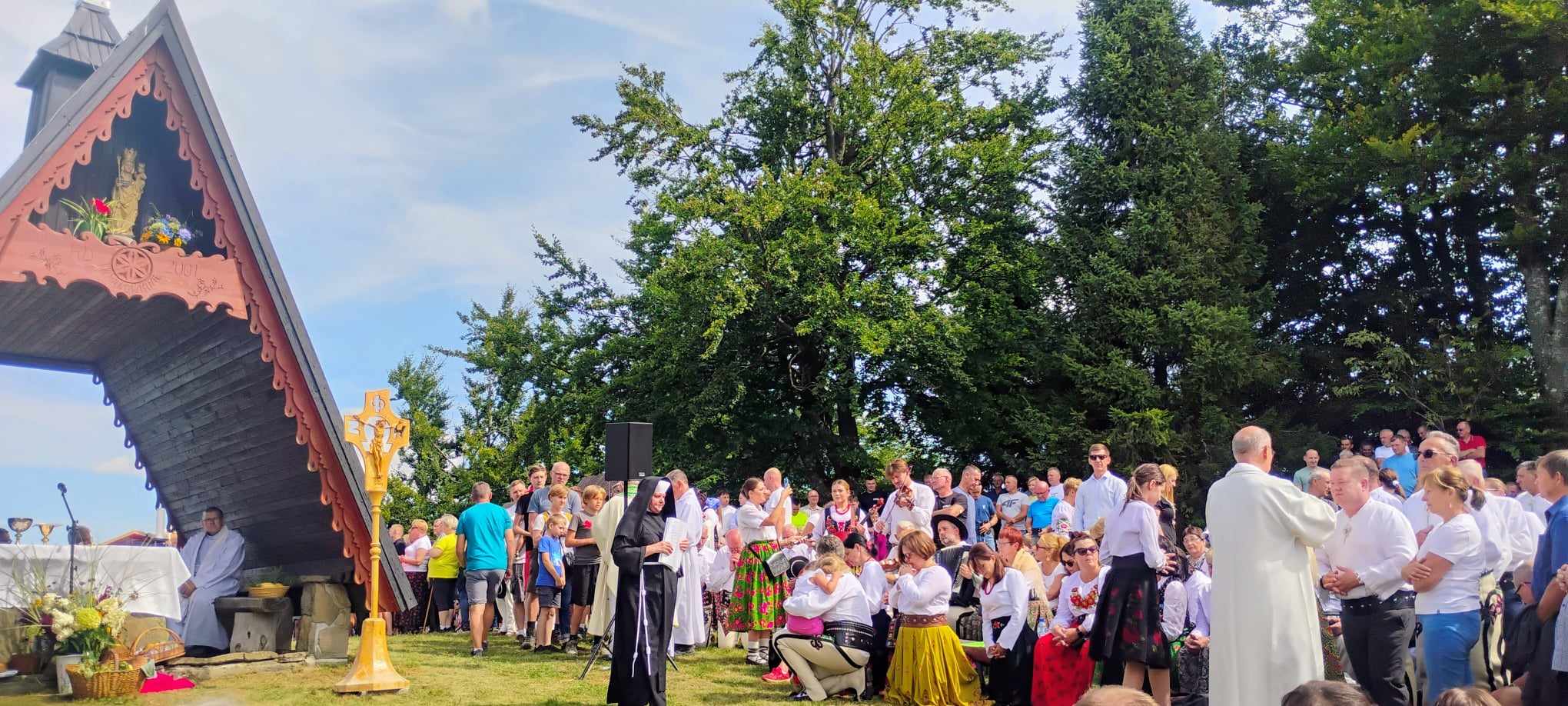 Przy krzyżu i na ołtarzu ułożonym z kamienia