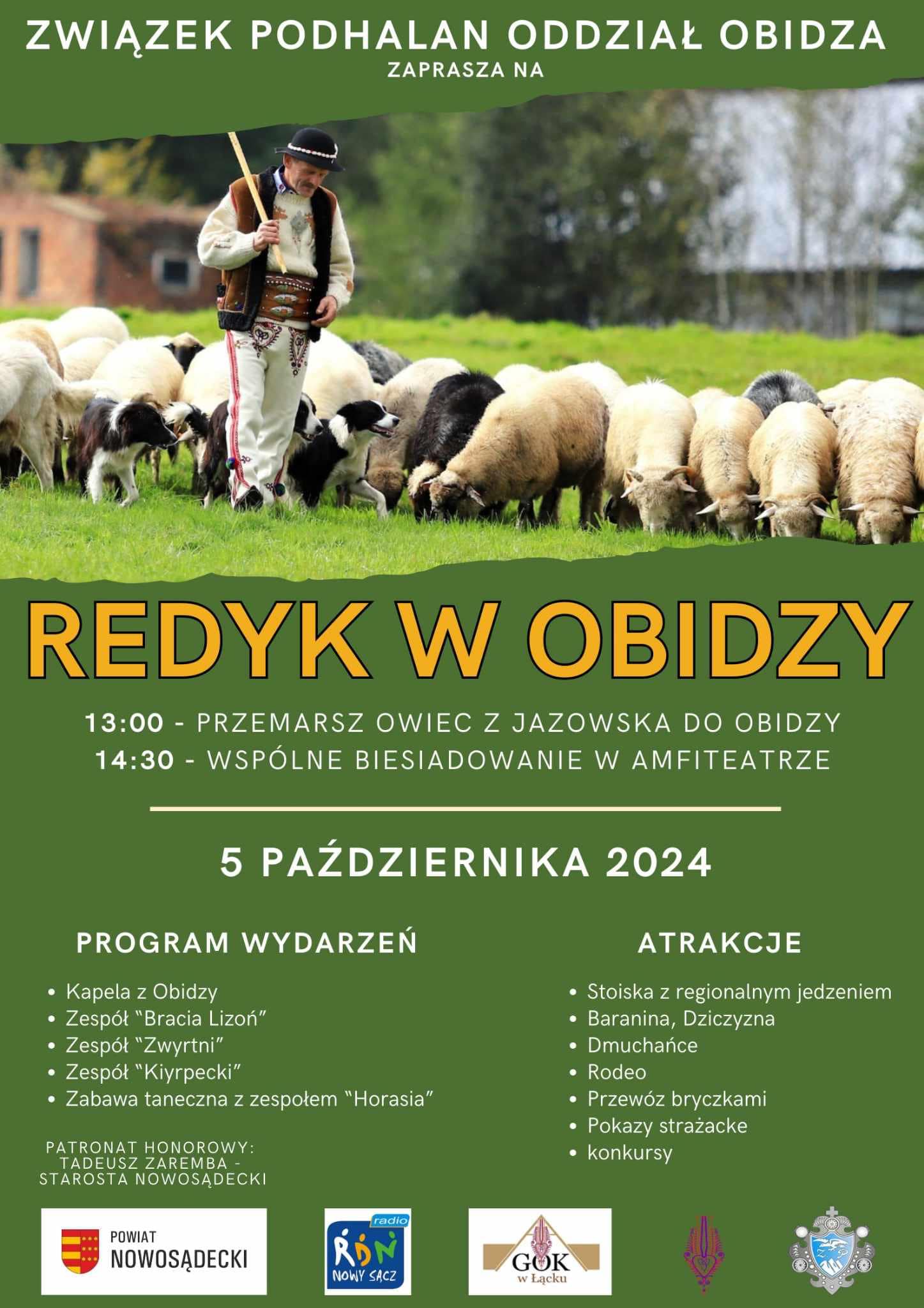 Redyk w Obidzy już niebawem! W tym roku jest zmiana, bo nie będzie to niedziela a sobota. Przemarsz owiec z Jazowska do Obidzy zaplanowano na godzinę 13:00. Od 14:30 wspólne biesiadowanie w Amfiteatrze w Obidzy. Szczegóły na powyższym plakacie. Jak co roku postaramy się przygotować materiał z tego wydarzenia. Poniżej materiał z zeszłego roku: