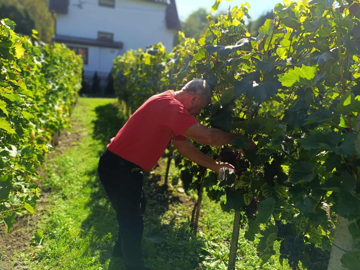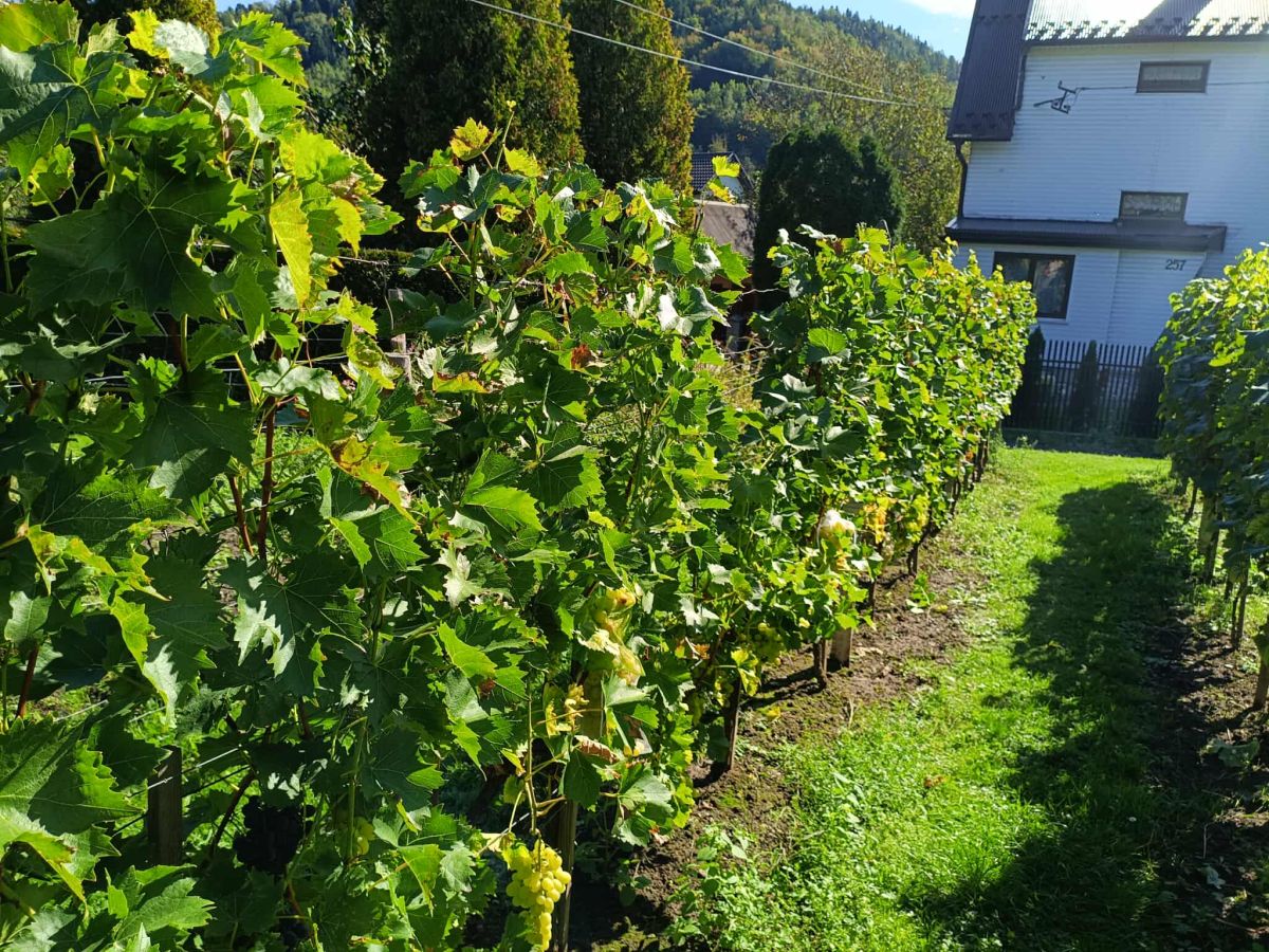 W 2015 roku, w jednym z moich artykułów, życzyliśmy właścicielowi Winnicy Tabu, aby powrócił z Festiwalu Młodego Wina z nagrodą… i udało się! Dziś, po dziesięciu latach, odwiedzam założyciela tej wyjątkowej, lokalnej winnicy. Winnica Tabu położona jest w malowniczym Beskidzie Sądeckim, z widokiem na pasmo Radziejowej. Już na pierwszy rzut oka widać, że to miejsce nie powstało przypadkiem – wszystko jest tu przemyślane, dopracowane i pieczołowicie utrzymane. Właściciel, pan Tadeusz Bugański, człowiek, dla którego winiarstwo stało się prawdziwą pasją, oprowadza mnie po swojej winnicy, pokazując miejsca, gdzie dojrzewają winorośle. Obfitość gron robi ogromne wrażenie, a ich smak – zachwyca.
