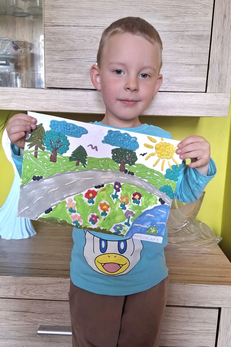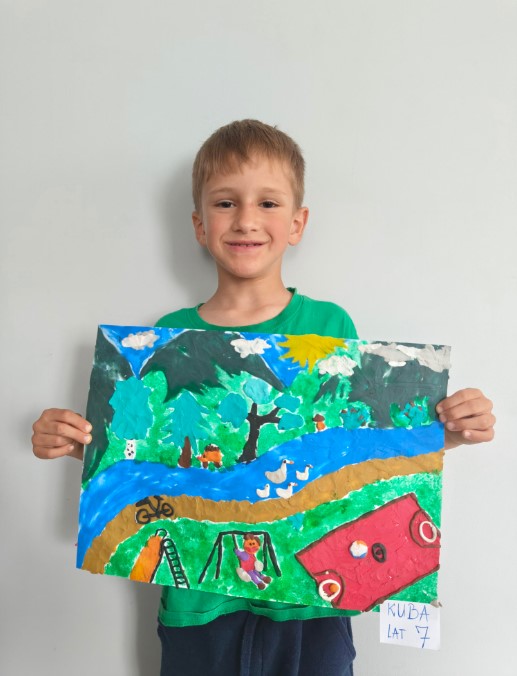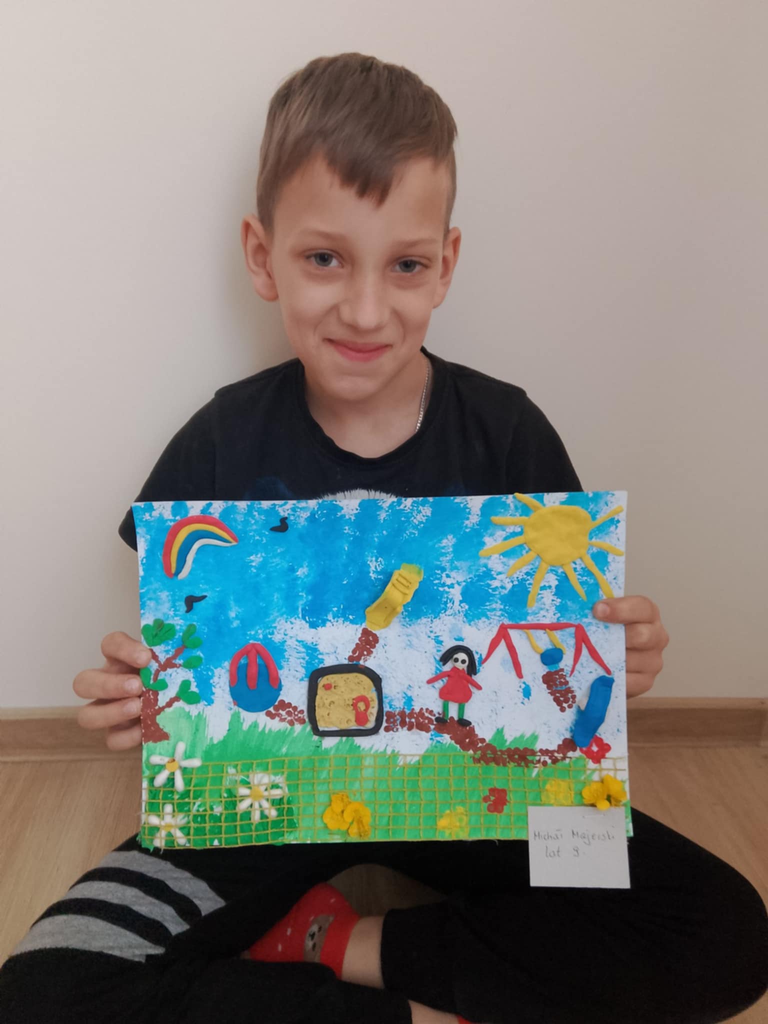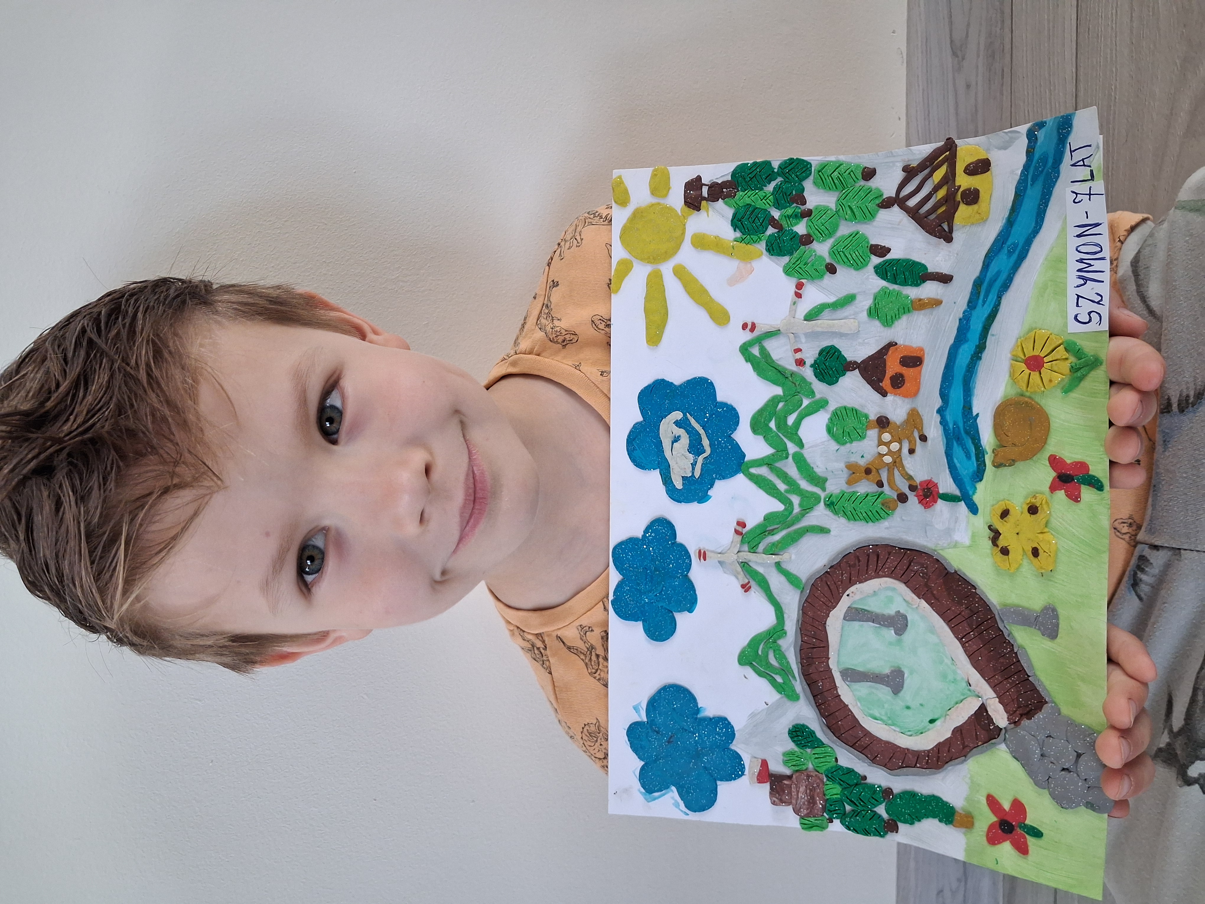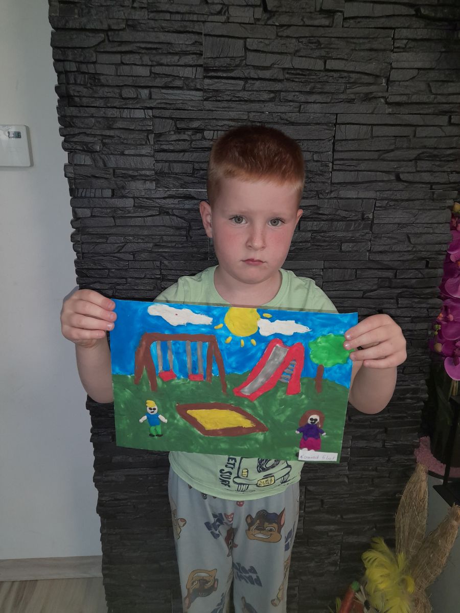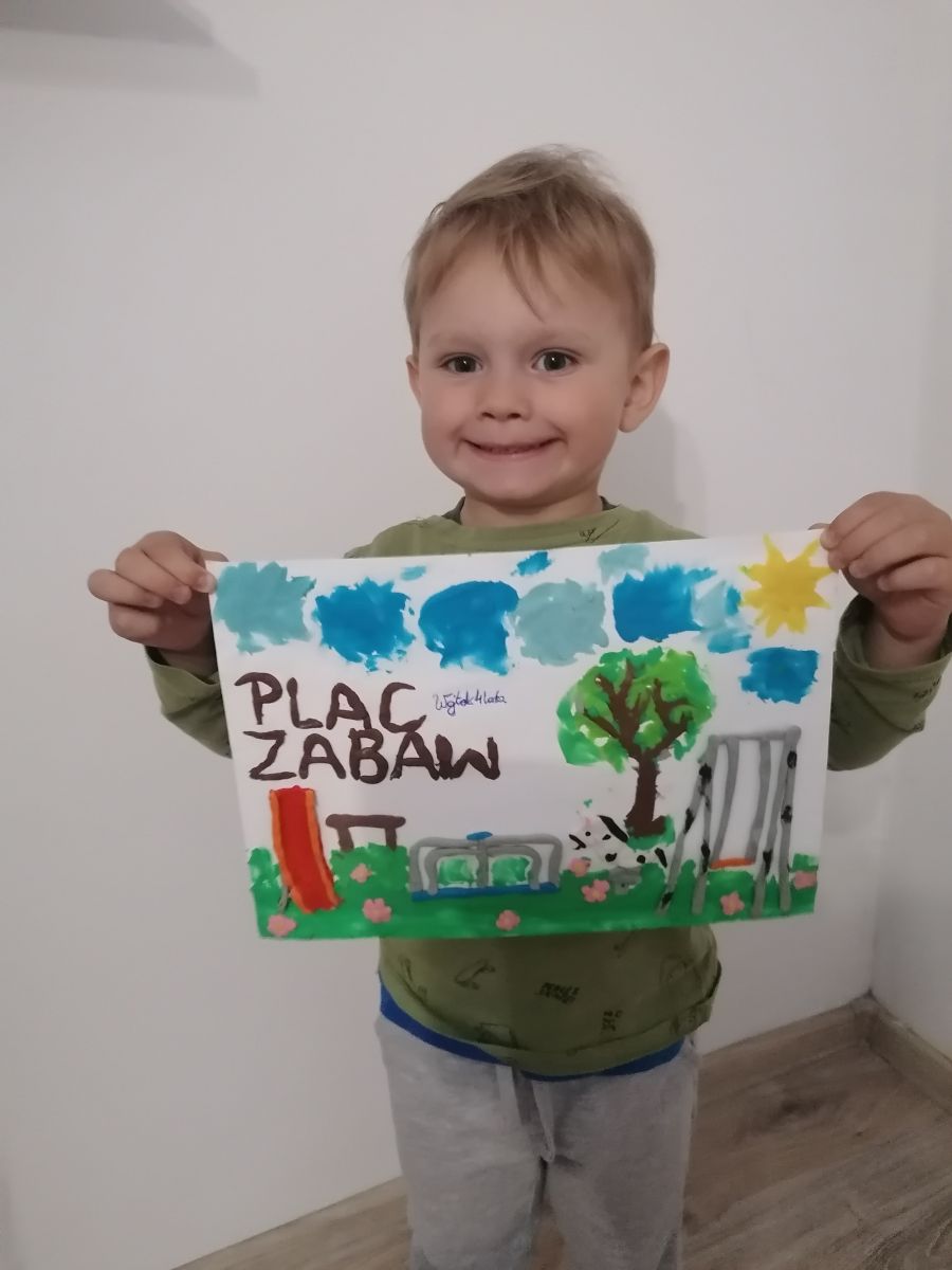 Na naszym placu zabaw karuzela mknie,huśtawki wysoko bujają się.